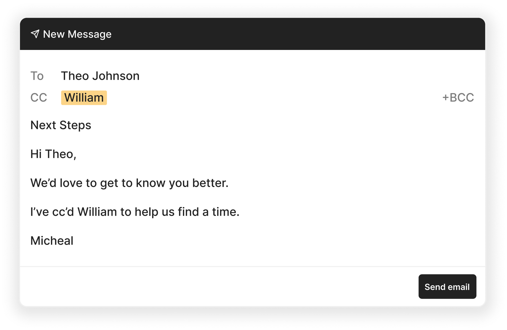“William, can you find a time for us to meet next week?”